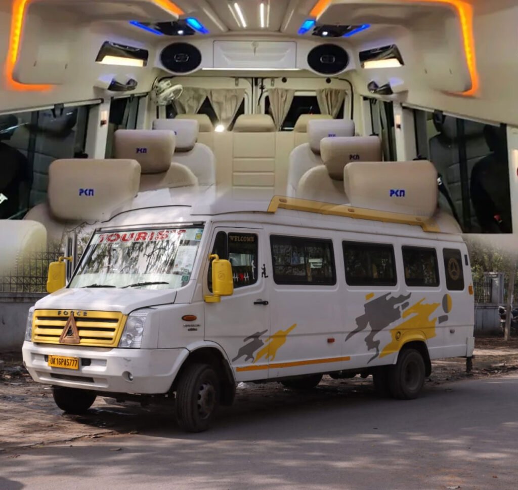 The price of the tempo traveller hire for customized India tours by Tempo Traveller Rent Gurgaon Private Tours is very economical. If you are traveling with a family of more than 12 Seater on board, it is always a better choice to look for options that help you avoid uncomfortable seating arrangements and make the travel journey more enjoyable instead of rough. Tempo Traveller has enough leg space to ensure that the journey is smooth and comfier. Whether you are planning a local day of sightseeing or a weekend getaway for your family or if you have to attend important family functions or for India private tours we will ensure that the joy of traveling together never fades away. Depending on your needs, the various options available to you are like 12 Seater Tempo Traveller.Tempo Traveller Rental Services provides transport service in Gurgaon for Gurgaon sightseeing and outstation trip. 12 Seater Tempo Traveller is one of most demanded tourist vehicle of India and has good latest facilities like pushback seat, neat clean curtain, available music facilities with LCD and available sofa in the back side of vehicle. Travel with 12 Seater Tempo Traveller Hire in Gurgaon with pushback seats and comfortable seats for a medium group tour. Whether you’re planning a family vacation, a group outing, or corporate travel, our spacious and well-maintained 12 Seater Tempo Traveller on rent is the perfect choice for all your travel needs. Keeping safety as top most priority, we hire experienced drivers who keep your travel safe and entertaining throughout. We offer 12 Seater Tempo Traveller Rental in Gurgaon services from Gurgaon to Agra, Jaipur, Manali, Haridwar, Golden Triangle Tour, Rishikesh, Jammu & Kashmir, Nainital, Shimla, Rajasthan, Ranikhet, Dehradun, Chardham Yatra, etc.