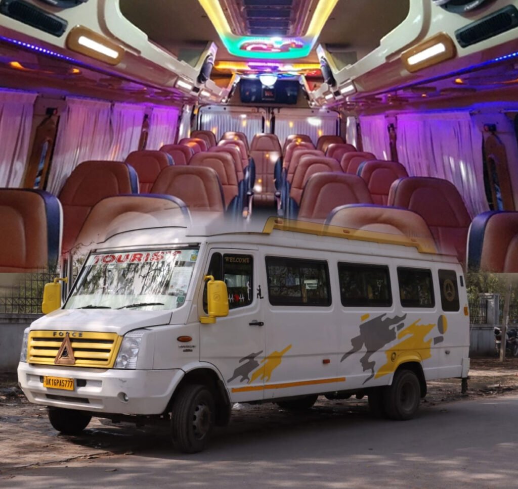 Tempo Traveller Rental Services provides transport service in Gurgaon for Gurgaon sightseeing and outstation trip. 22 Seater Tempo Traveller is one of most demanded tourist vehicle of India and has good latest facilities like pushback seat, neat clean curtain, available music facilities with LCD and available sofa in the back side of vehicle. Travel with 22 Seater Tempo Traveller Hire in Gurgaon with pushback seats and comfortable seats for a medium group tour. Whether you’re planning a family vacation, a group outing, or corporate travel, our spacious and well-maintained 22 Seater Tempo Traveller on rent is the perfect choice for all your travel needs. Keeping safety as top most priority, we hire experienced drivers who keep your travel safe and entertaining throughout. We offer 22 Seater Tempo Traveller Rental in Gurgaon services from Gurgaon to Agra, Jaipur, Manali, Haridwar, Golden Triangle Tour, Rishikesh, Jammu & Kashmir, Nainital, Shimla, Rajasthan, Ranikhet, Dehradun, Chardham Yatra, etc.